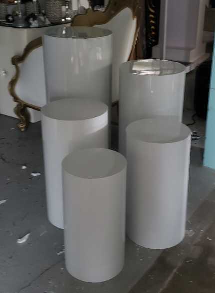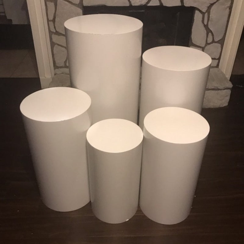 Installation: Standing is_customized: Yes Style: Modern Material: Metal shape: round use: cake rack,wedding decoration,party,birthday quantity: 5 piece set name: White round wedding cake stand